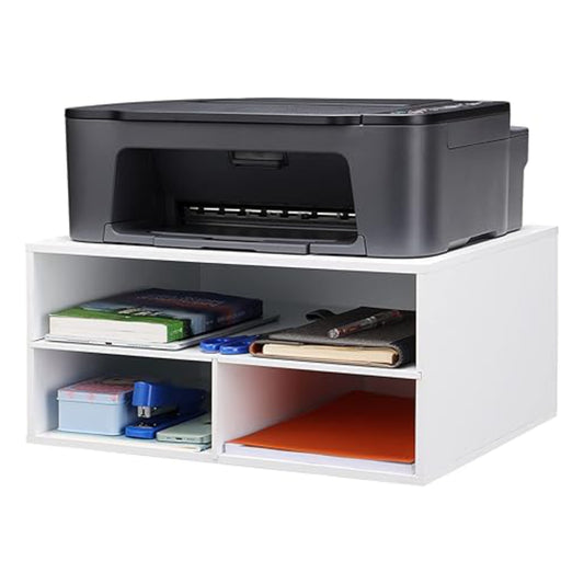 Home Sparkle 3-Tier Printer Stand with Storage – Wood Desk Organizer Shelf for Home/Office, Paper Tray, Printer Riser for Desk, Compact Monitor Stand