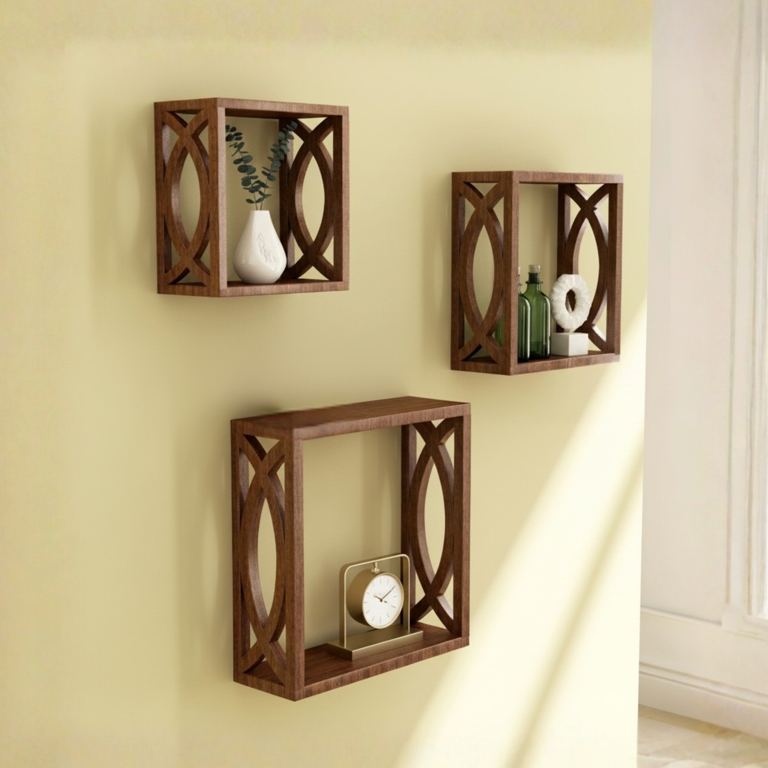 Home Sparkle MDF Wooden Wall Shelves | 3 Set Decorative Wall Mounted Cube Shelves Rack | Ideal for Decoration in Living Room, Bedroom & Wall Floating Bookshelf