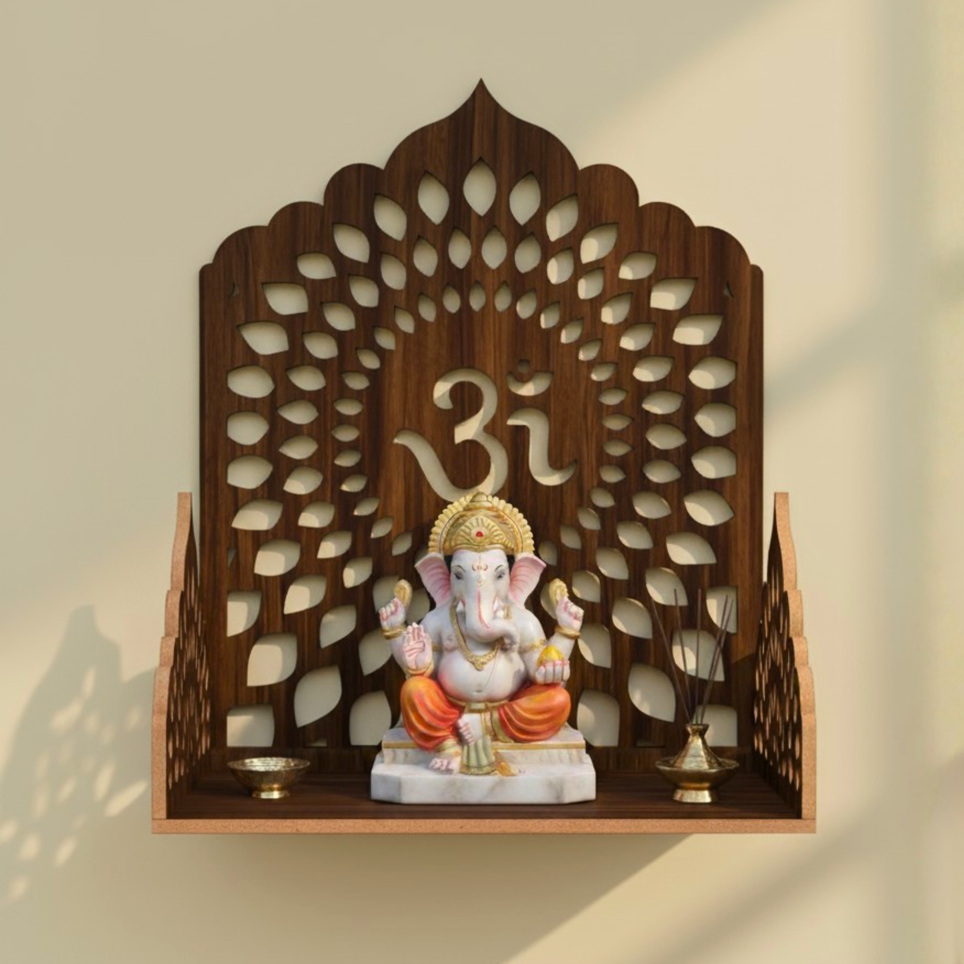 Om Wall Handing Mandir |Wooden Wall Mounted Hanging Puja Temple | Wood God Stand for Pooja Room | Mandir Devghar Stand Temple | for Home Shop Office, Puja Mandir Pooja Stand for Home Wall