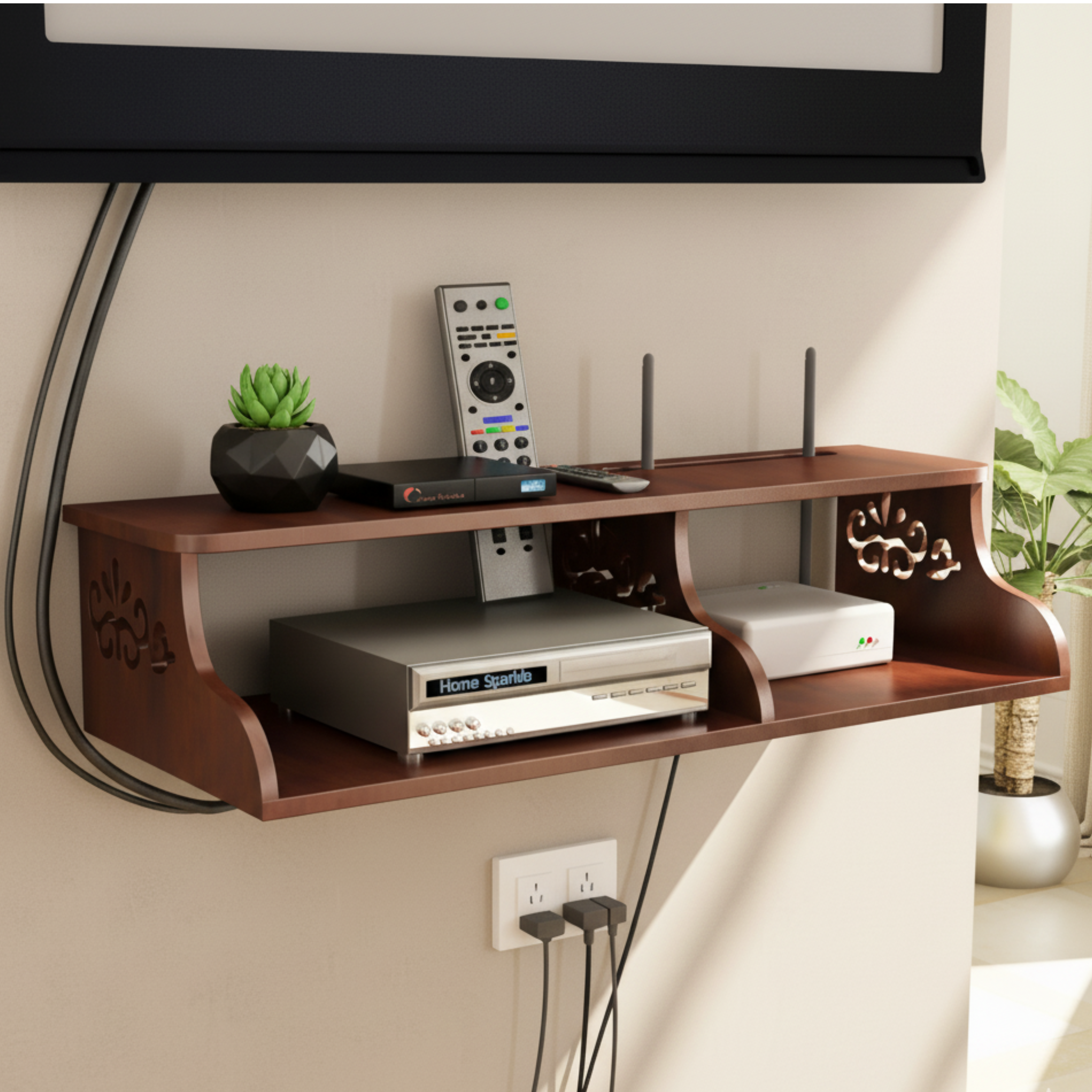 Home Sparkle Rectangular Wall Shelf | Multiple Section MDF Wall Shelve Display Rack for Home Kitchen Bedroom and Living Room (Brown) Modern Unique Designer Wall shelf Rack for Home