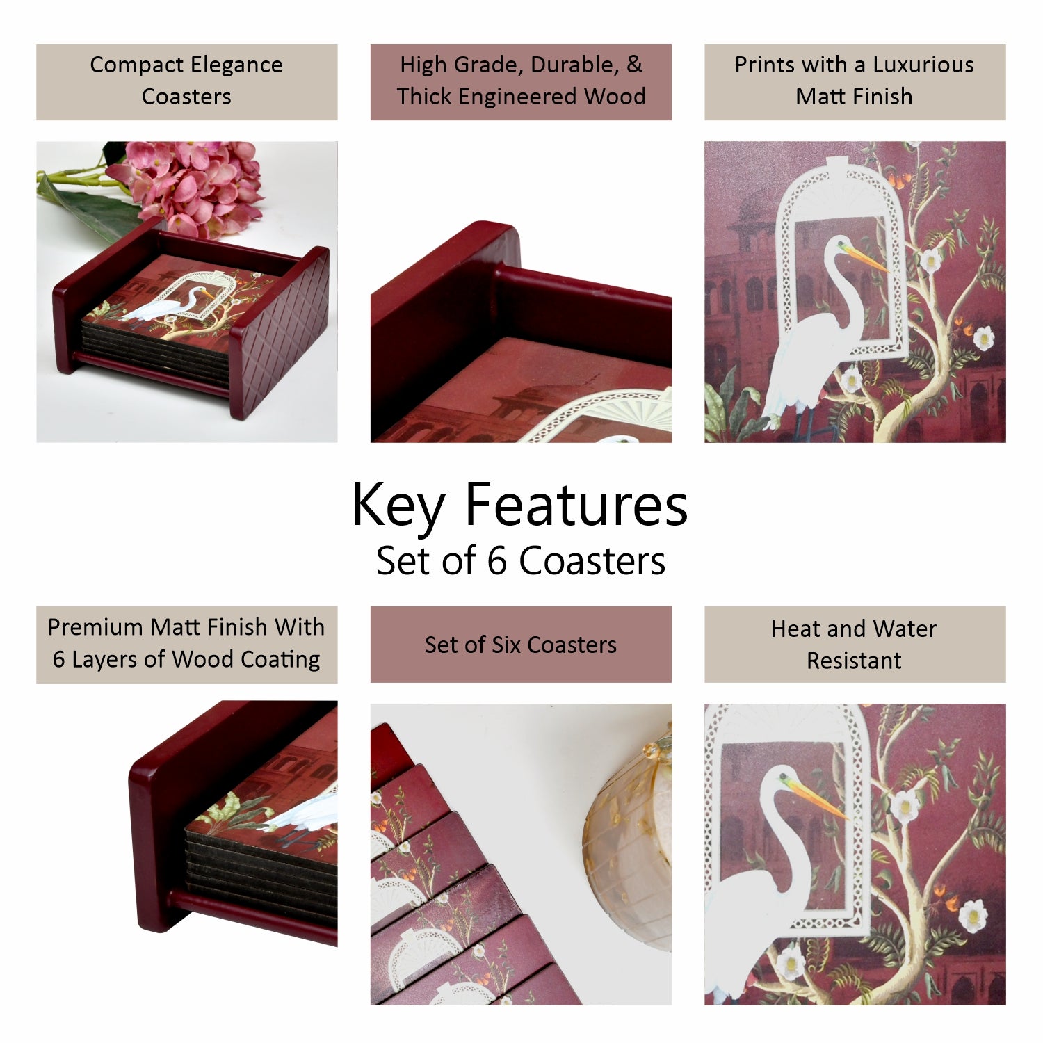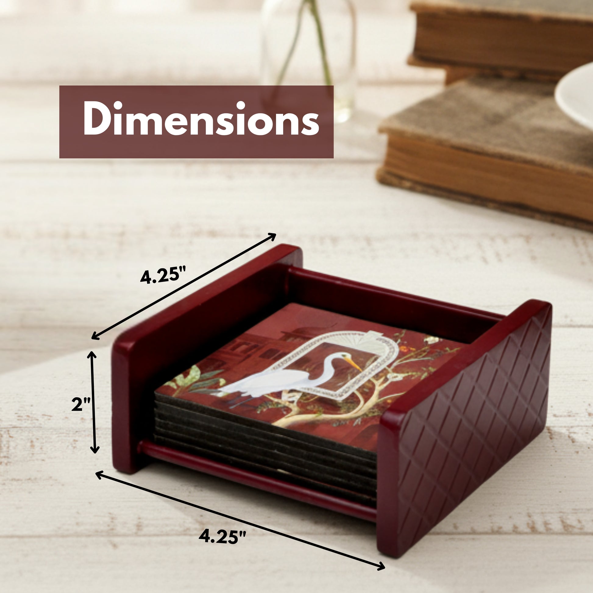 Add elegance and functionality to your table with this Set of 6 Wooden Coasters with Holder. Designed to protect your surfaces from stains and spills, these coasters are perfect for tea cups, coffee mugs, and glasses. The elegant printed design and sturdy holder make them both practical and stylish — a perfect addition to your dining or coffee table.