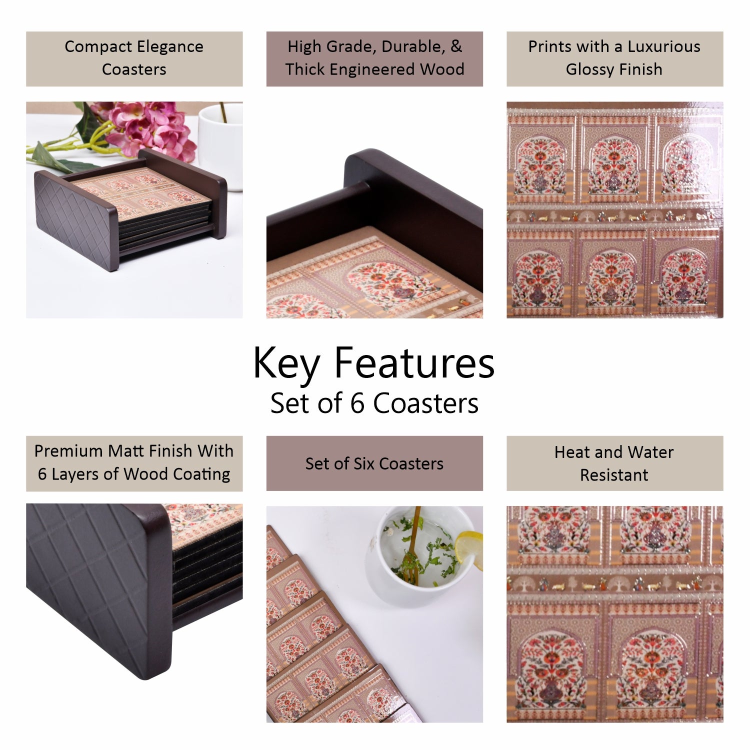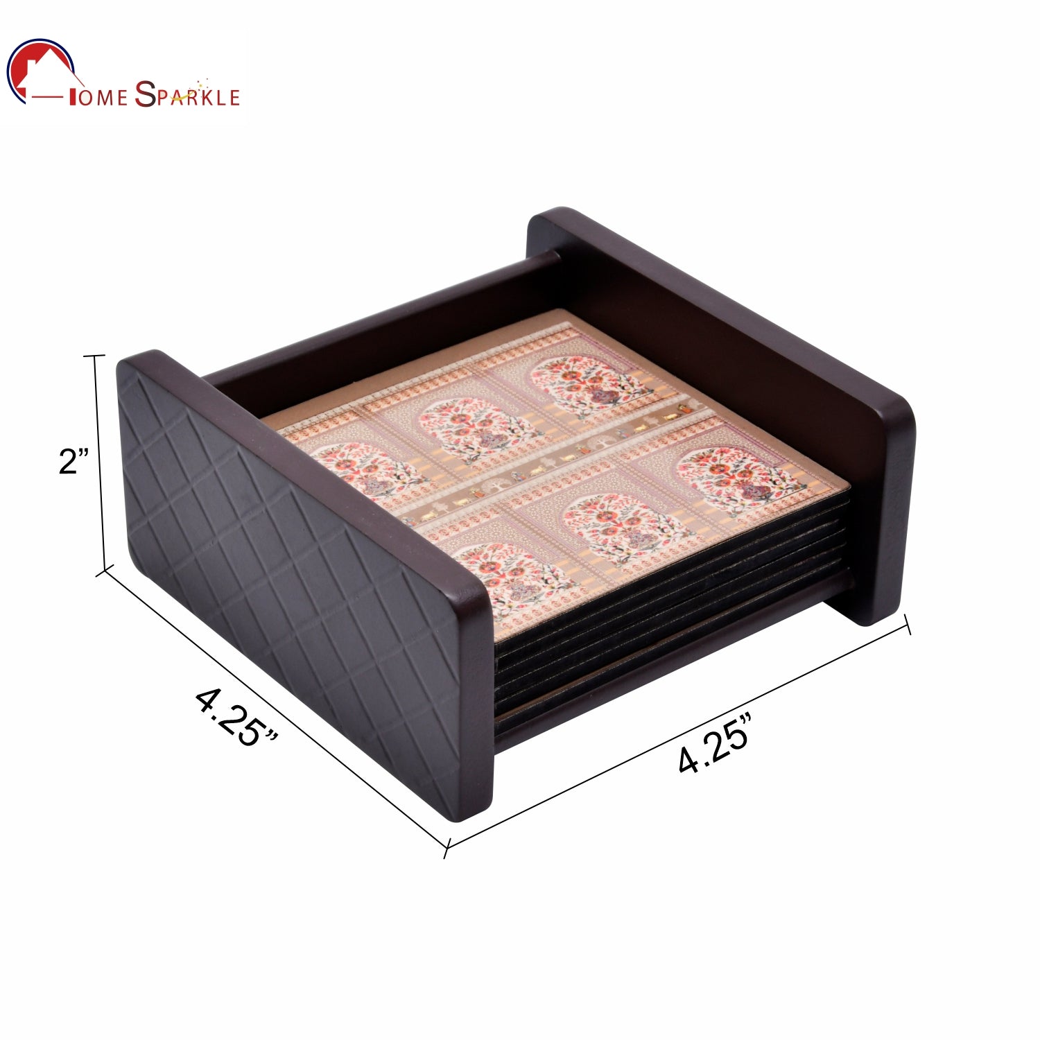 Coasters Set for Dining Table – Tea Coasters for Cups & Mugs | Elegant Table Décor Accessories – Set of 6 with Holder – Durable & Stylish