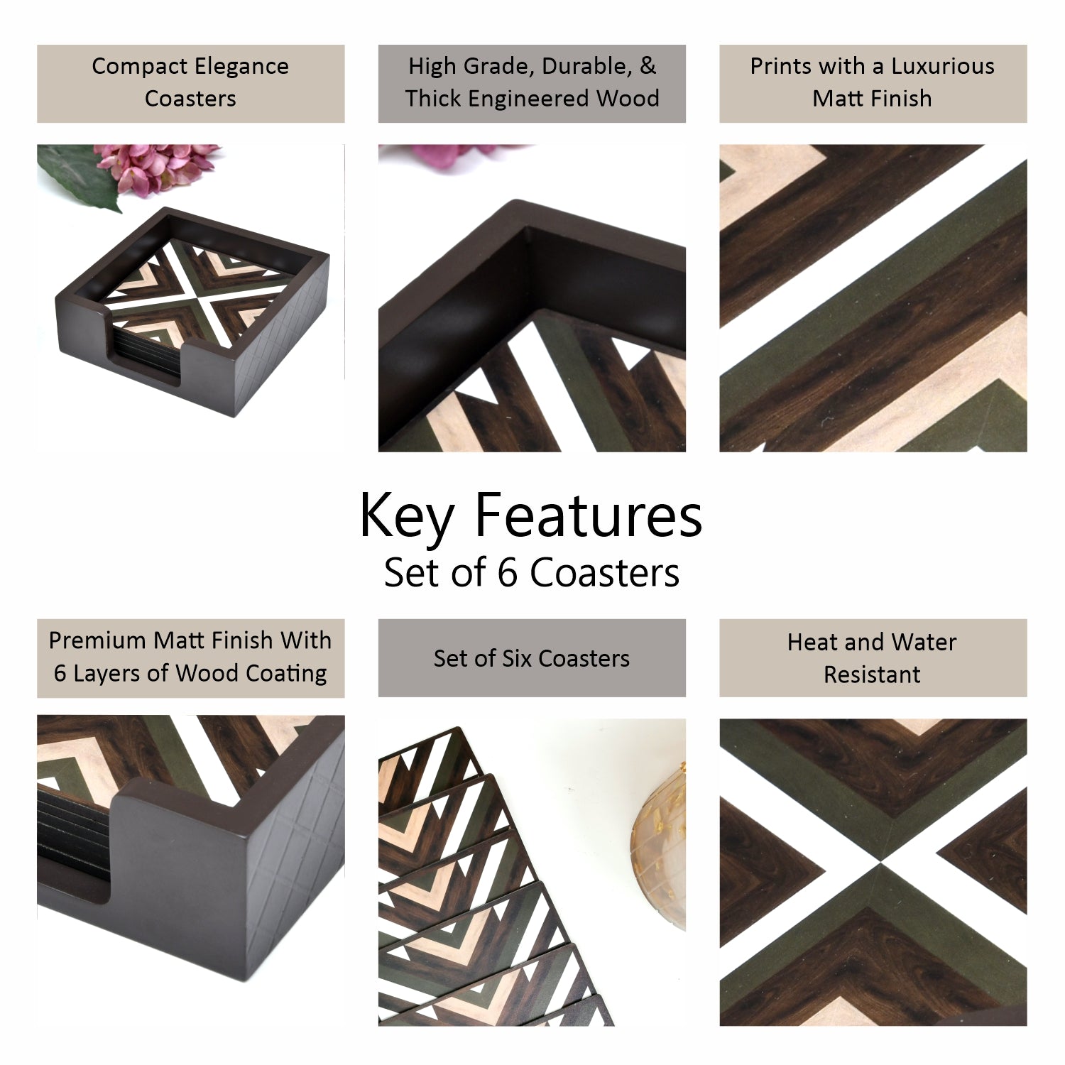 Add a touch of style and practicality to your dining table with this Set of 6 Elegant Tea Coasters with Holder. Designed to protect your surfaces from heat, moisture, and stains, these coasters are perfect for tea cups, coffee mugs, and glasses. Made from durable engineered wood with a smooth laminated finish, they combine everyday utility with elegant table décor.