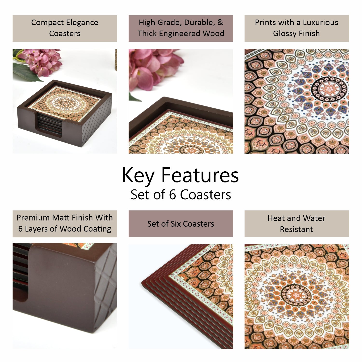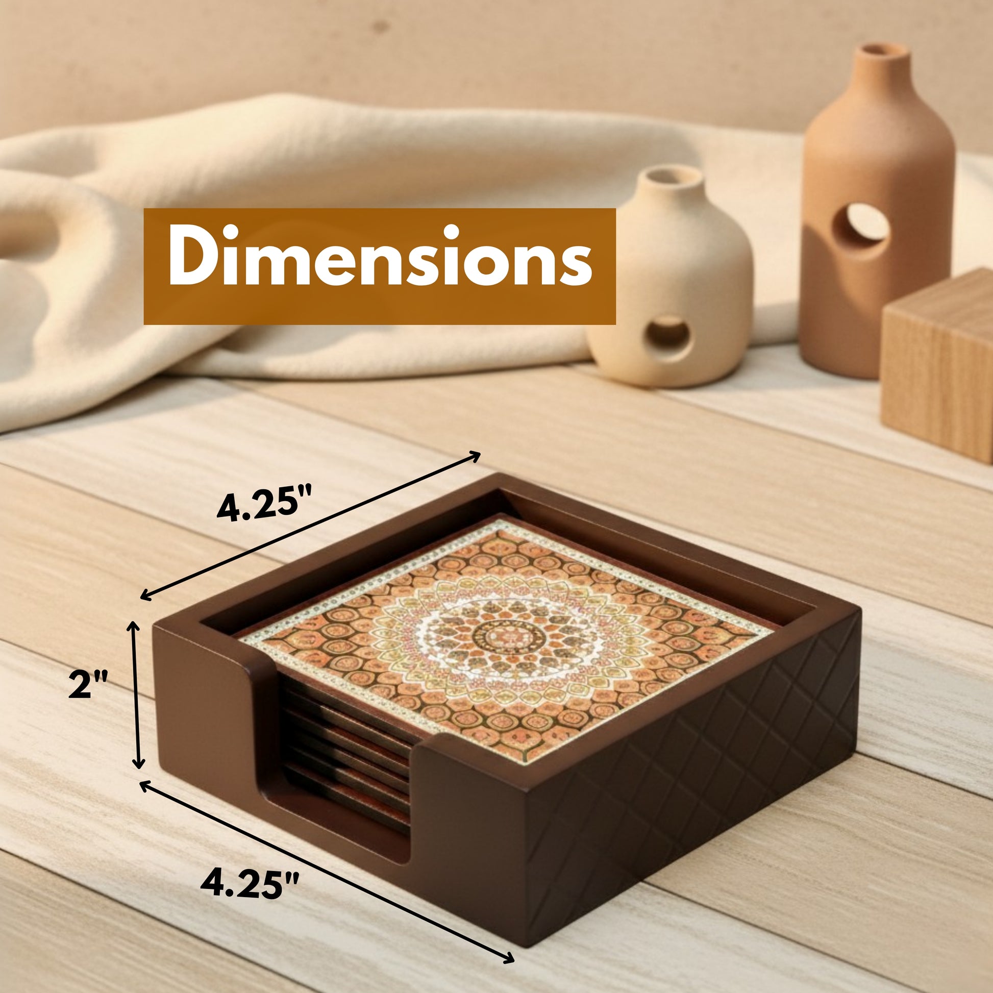 Coasters Set for Dining Table – Tea Coasters for Cups & Mugs | Elegant Table Décor Accessories – Set of 6 with Holder – Durable & Stylish