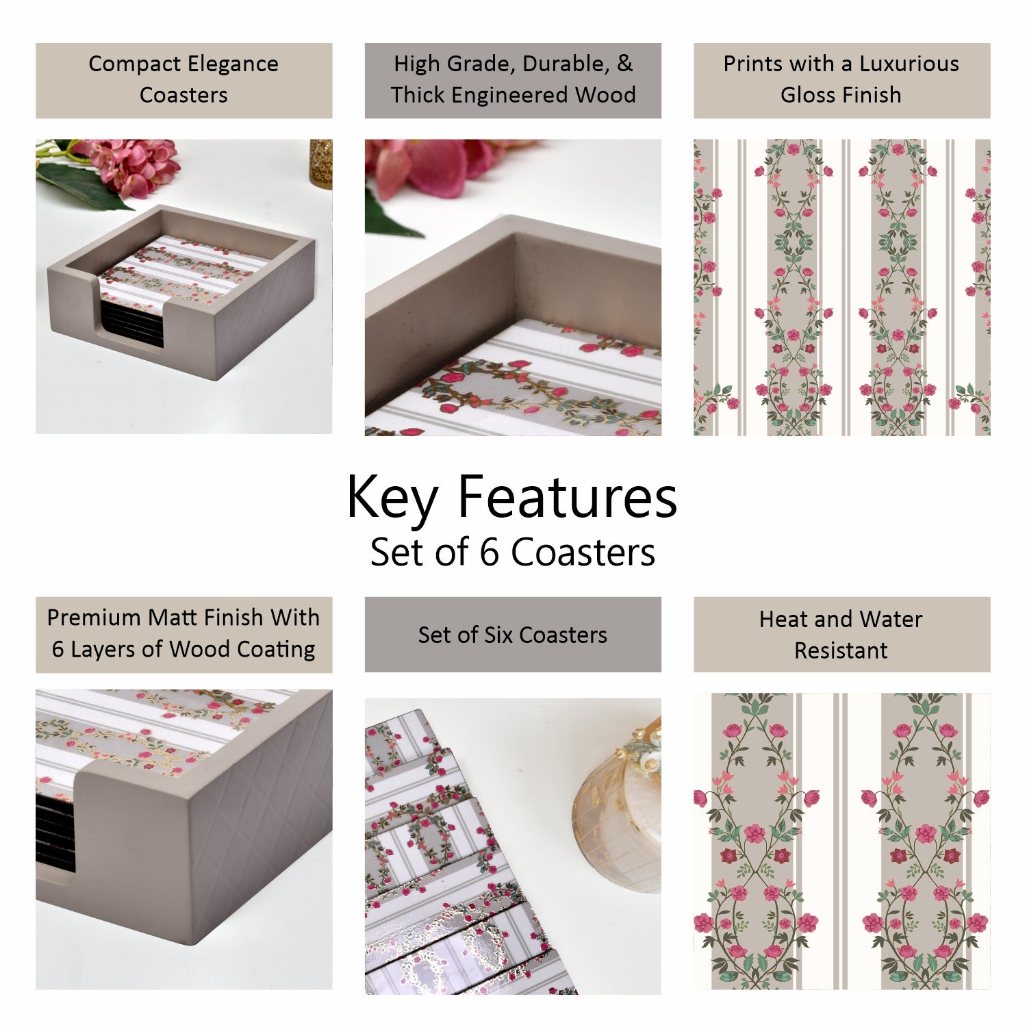 Add a touch of style and practicality to your dining table with this Set of 6 Elegant Tea Coasters with Holder. Designed to protect your surfaces from heat, moisture, and stains, these coasters are perfect for tea cups, coffee mugs, and glasses. Made from durable engineered wood with a smooth laminated finish, they combine everyday utility with elegant table décor.