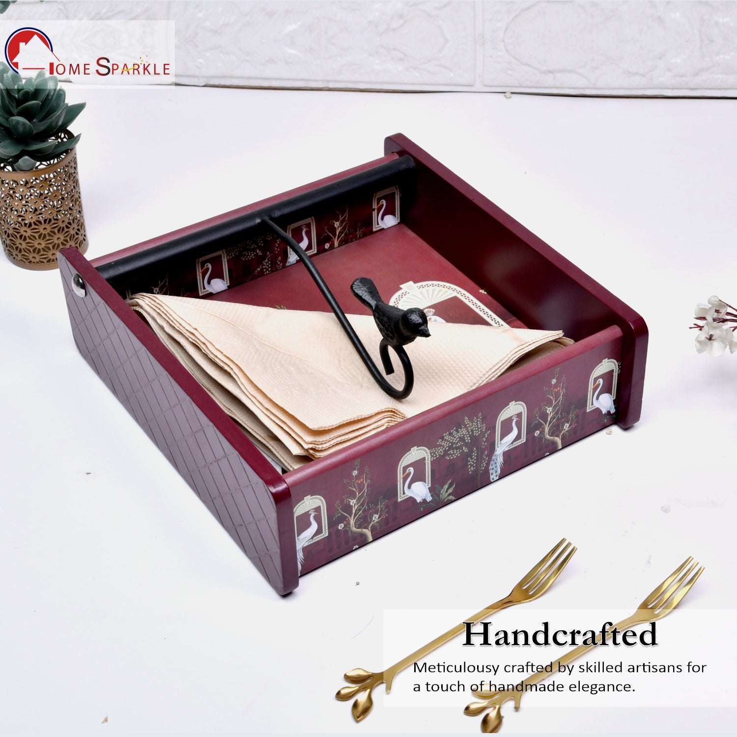 Add sophistication to your dining setup with this beautifully crafted Wooden Tissue / Napkin Holder. Made from premium engineered wood, it features an elegant printed design that elevates your table décor while keeping tissues neatly in place. The sturdy metal handle ensures easy access and adds a modern, stylish accent to your space.