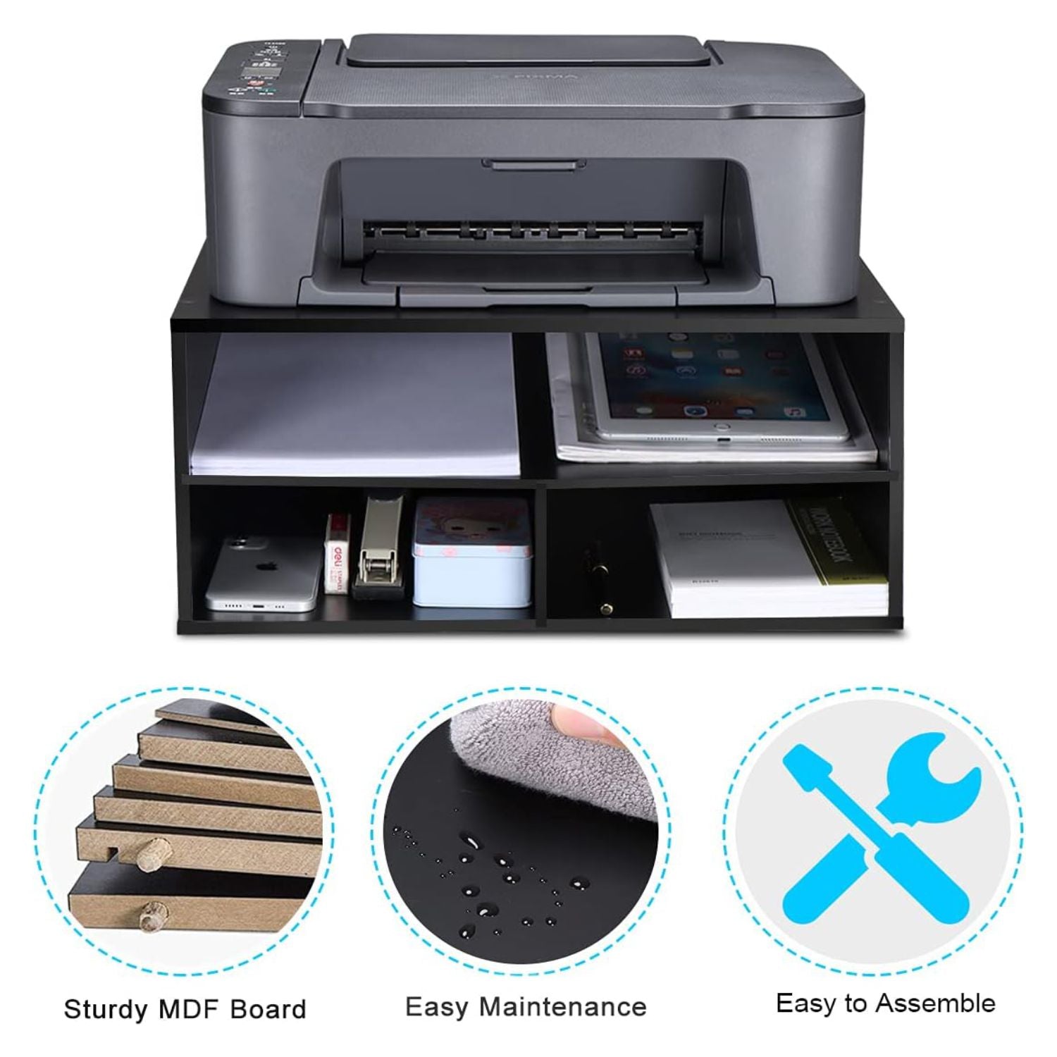 Keep your workspace clean and organized with this Wooden Printer Stand with Storage Organizer. Designed to hold your printer, it features multiple compartments to neatly store papers, files, notebooks, and office supplies. The sturdy engineered wood construction ensures durability, while the minimalist design complements any modern office or home setup.