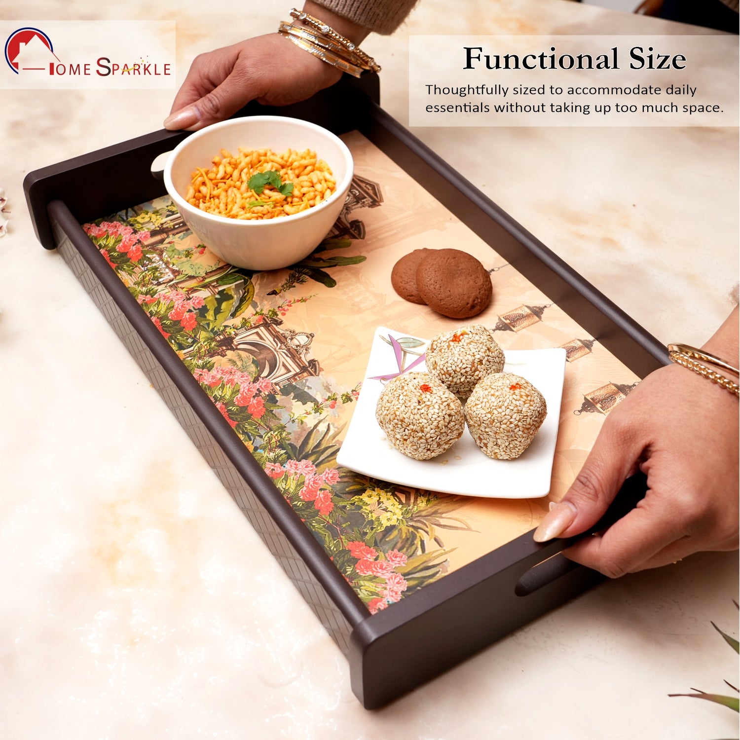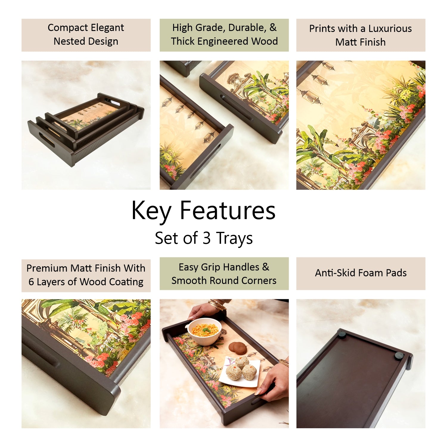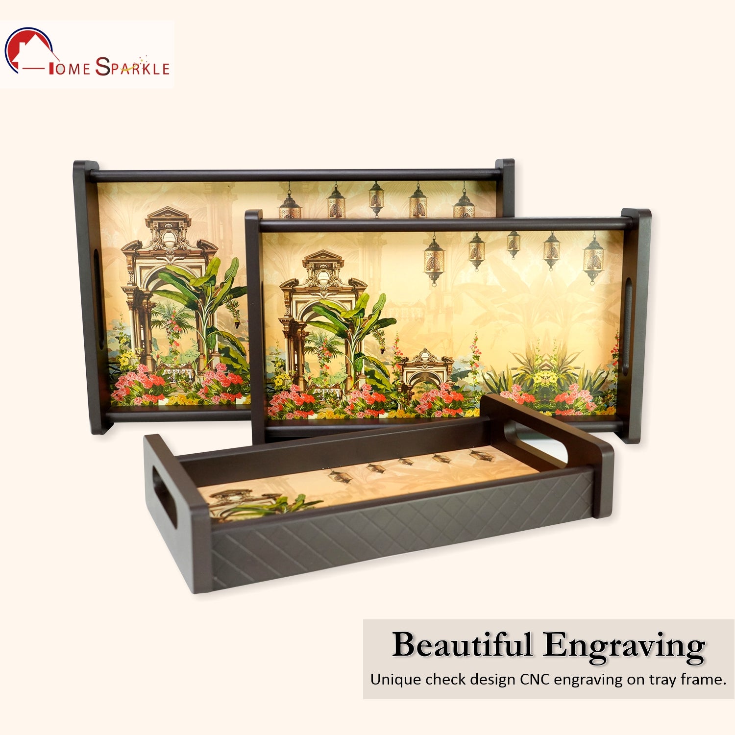Serve in style with this elegant Set of 3 Printed Wooden Serving Trays. Crafted from premium engineered wood, each tray features a beautiful printed design that adds charm and sophistication to your table. Perfect for serving tea, coffee, snacks, or desserts, these trays are both practical and decorative — ideal for daily use or entertaining guests.