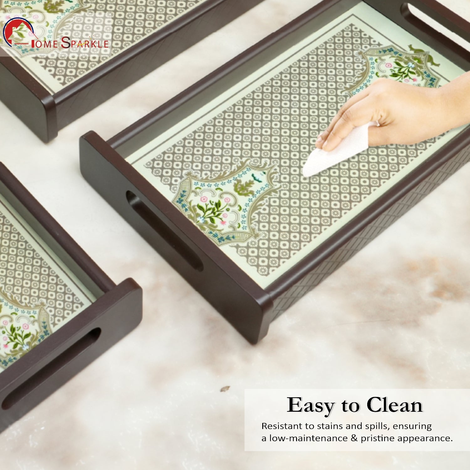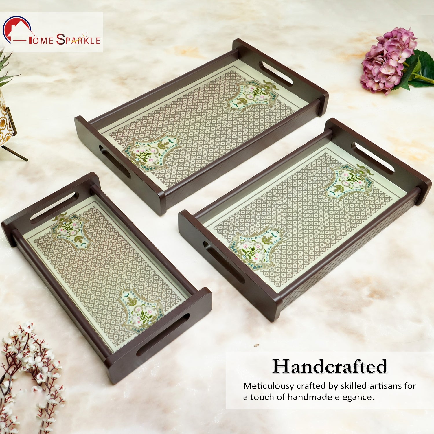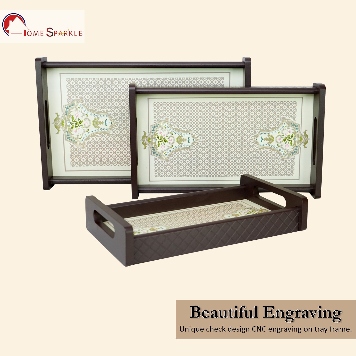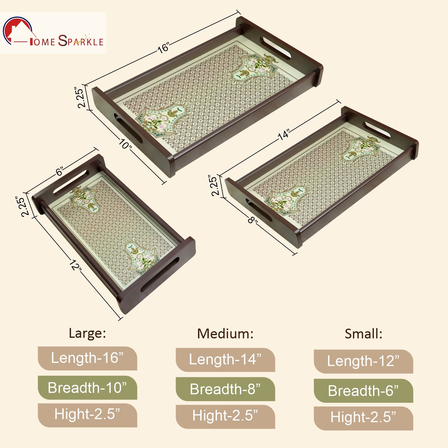 HomeSparkle Wooden Serving Tray Set of 3 – Sizes 16x10, 14x8 & 12x6 inch | Water-Resistant | MDF Print | Engineered Wood | Rectangular, Strong & Durable | Tray Set