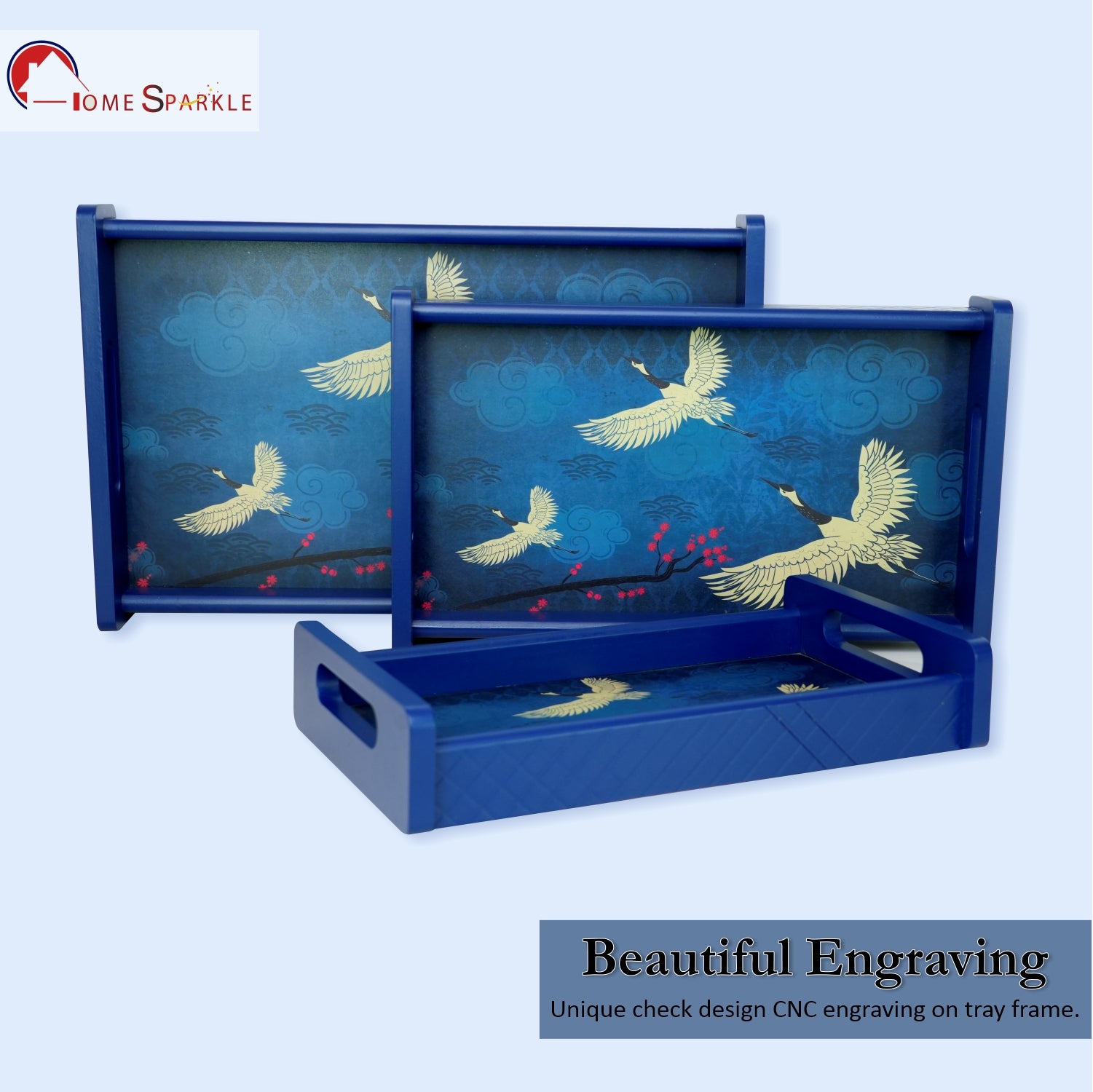 Serve in style with this elegant Set of 3 Printed Wooden Serving Trays. Crafted from premium engineered wood, each tray features a beautiful printed design that adds charm and sophistication to your table. Perfect for serving tea, coffee, snacks, or desserts, these trays are both practical and decorative — ideal for daily use or entertaining guests.