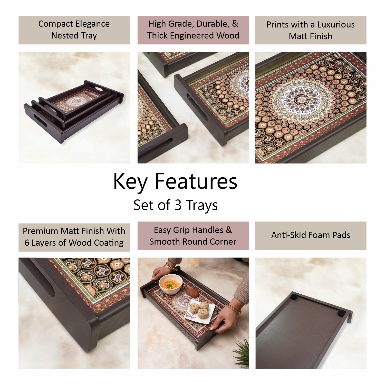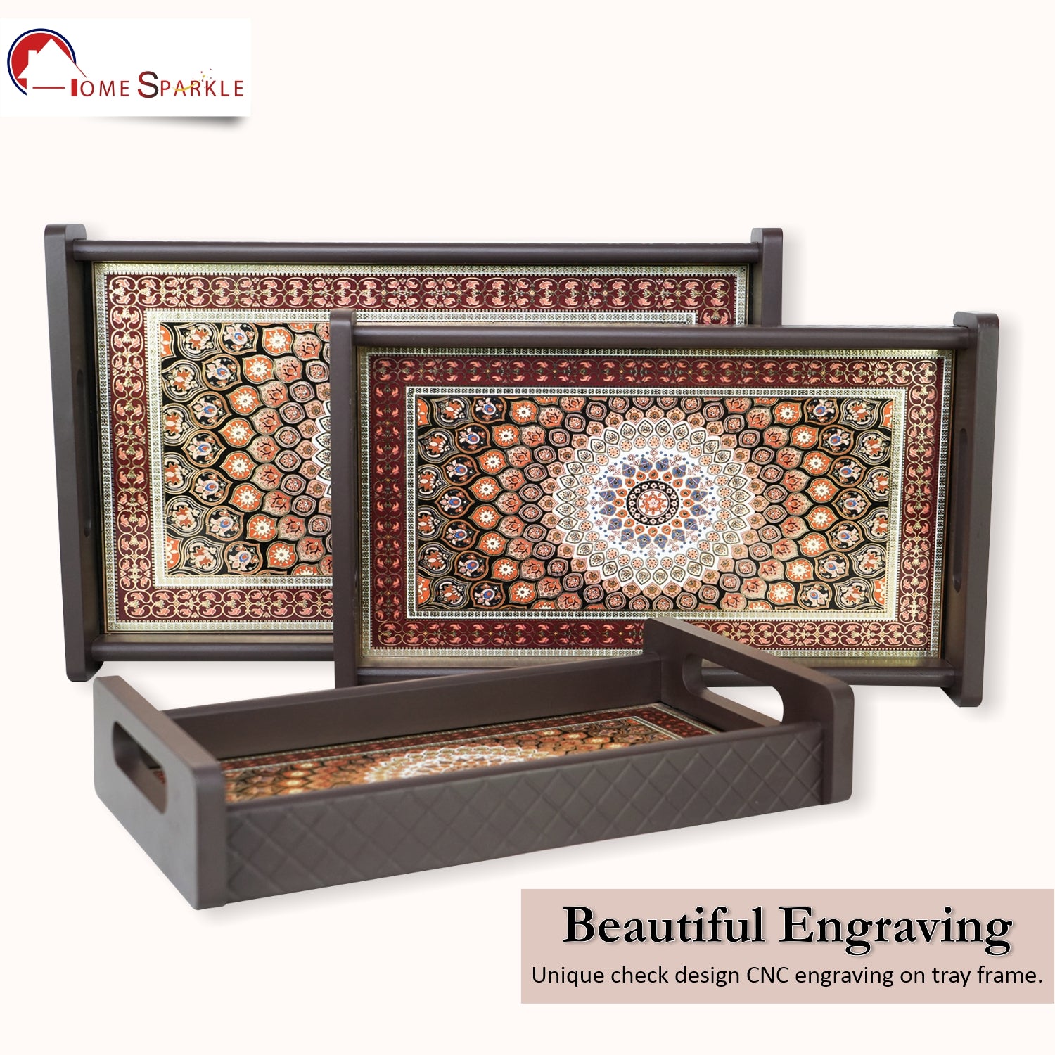 HomeSparkle Wooden Serving Tray Set of 3 – Sizes 16x10, 14x8 & 12x6 inch | Water-Resistant | MDF Print | Engineered Wood | Rectangular, Strong & Durable | Tray Set