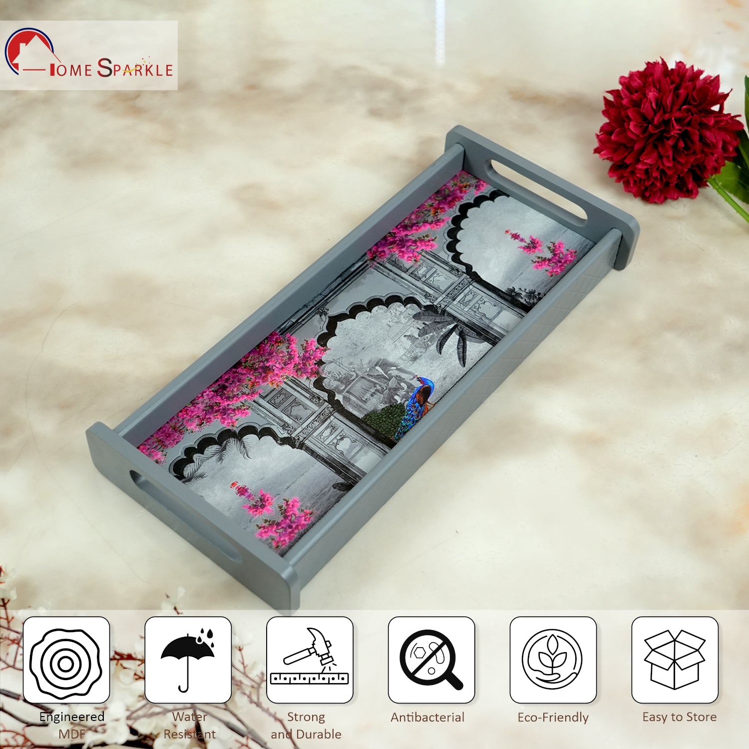 Rectangle Wooden Serving Tray | Elegant Printed MDF Tray for Home & Café Décor