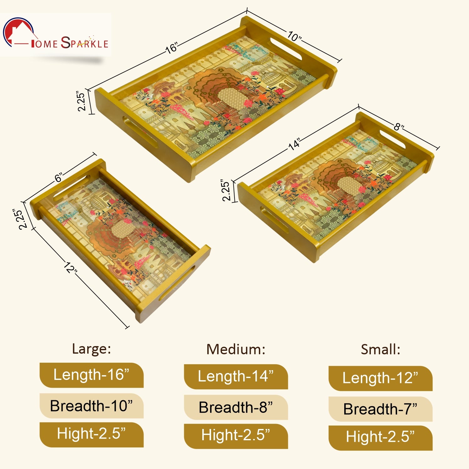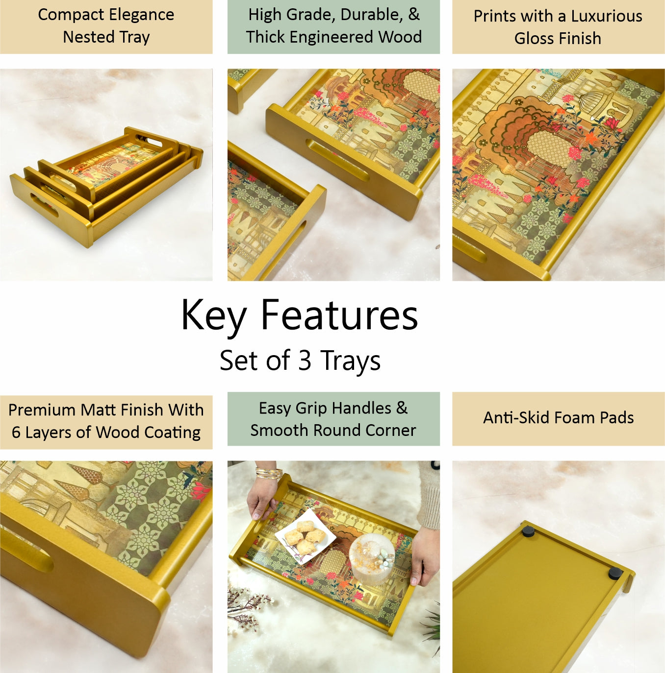 Package Includes: Set of 3 Serving Trays (Large, Medium, Small)