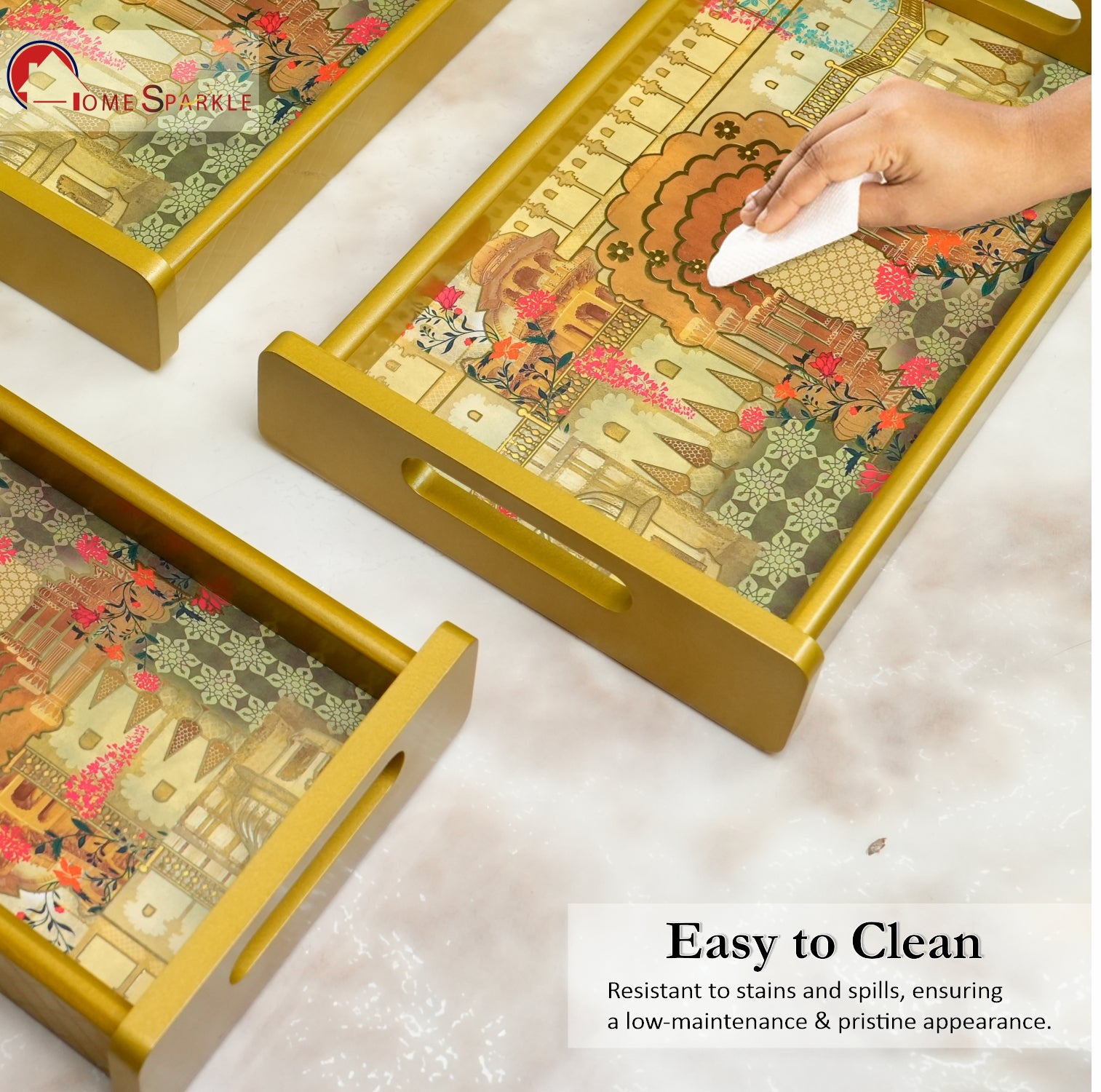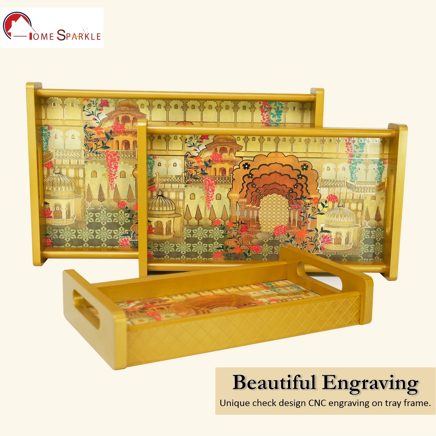 Set of 3 Printed Wooden Serving Trays for Kitchen, Tea, Coffee & Snacks | Decorative MDF Tray Set for Home & Gifting