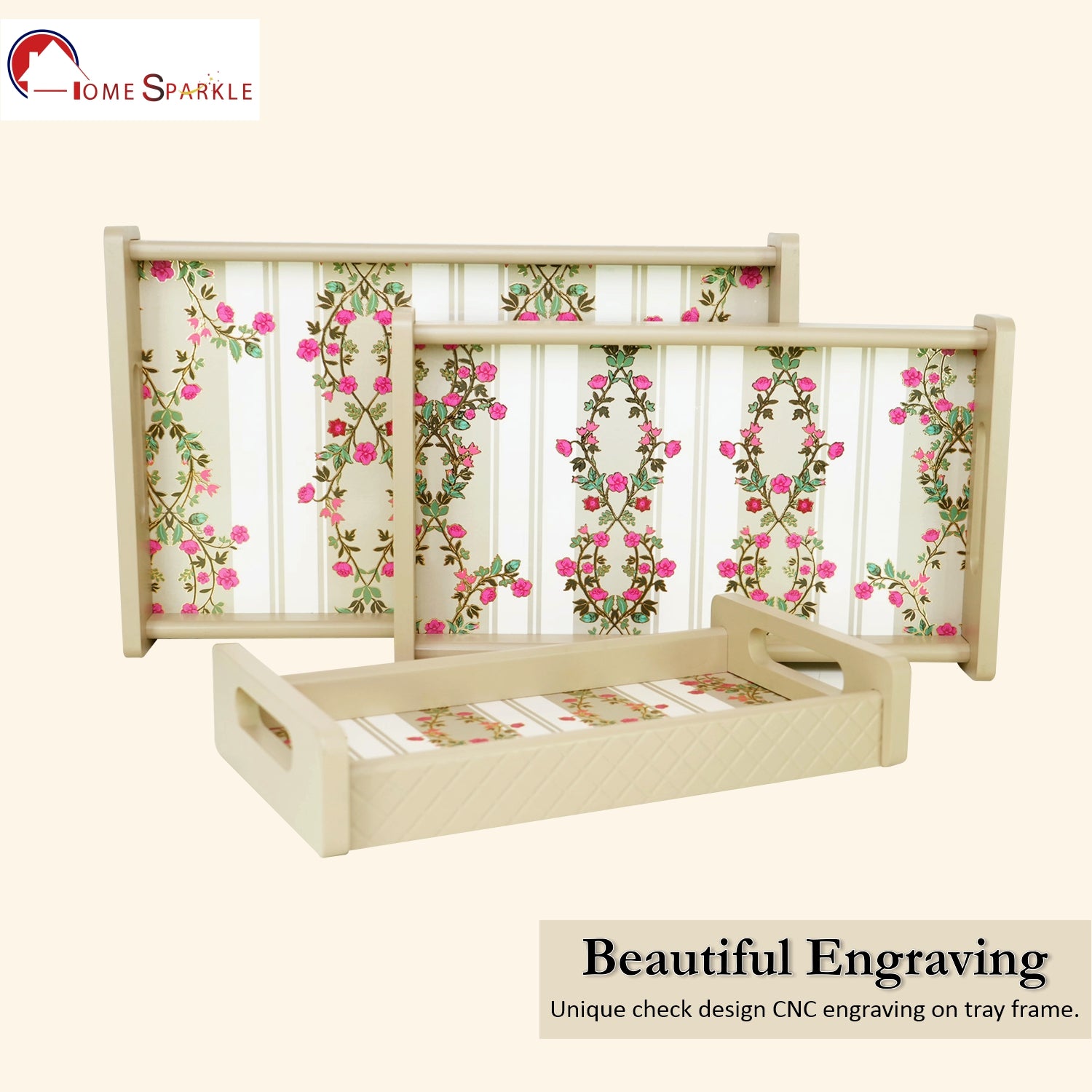 Serve in style with this elegant Set of 3 Printed Wooden Serving Trays. Crafted from premium engineered wood, each tray features a beautiful printed design that adds charm and sophistication to your table. Perfect for serving tea, coffee, snacks, or desserts, these trays are both practical and decorative — ideal for daily use or entertaining guests.