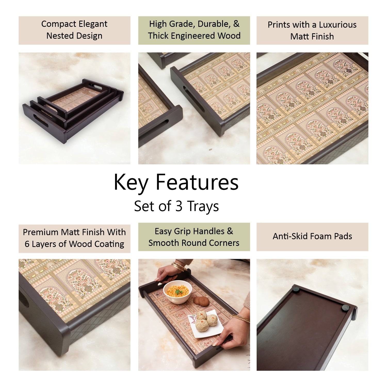 Serve in style with this elegant Set of 3 Printed Wooden Serving Trays. Crafted from premium engineered wood, each tray features a beautiful printed design that adds charm and sophistication to your table. Perfect for serving tea, coffee, snacks, or desserts, these trays are both practical and decorative — ideal for daily use or entertaining guests.