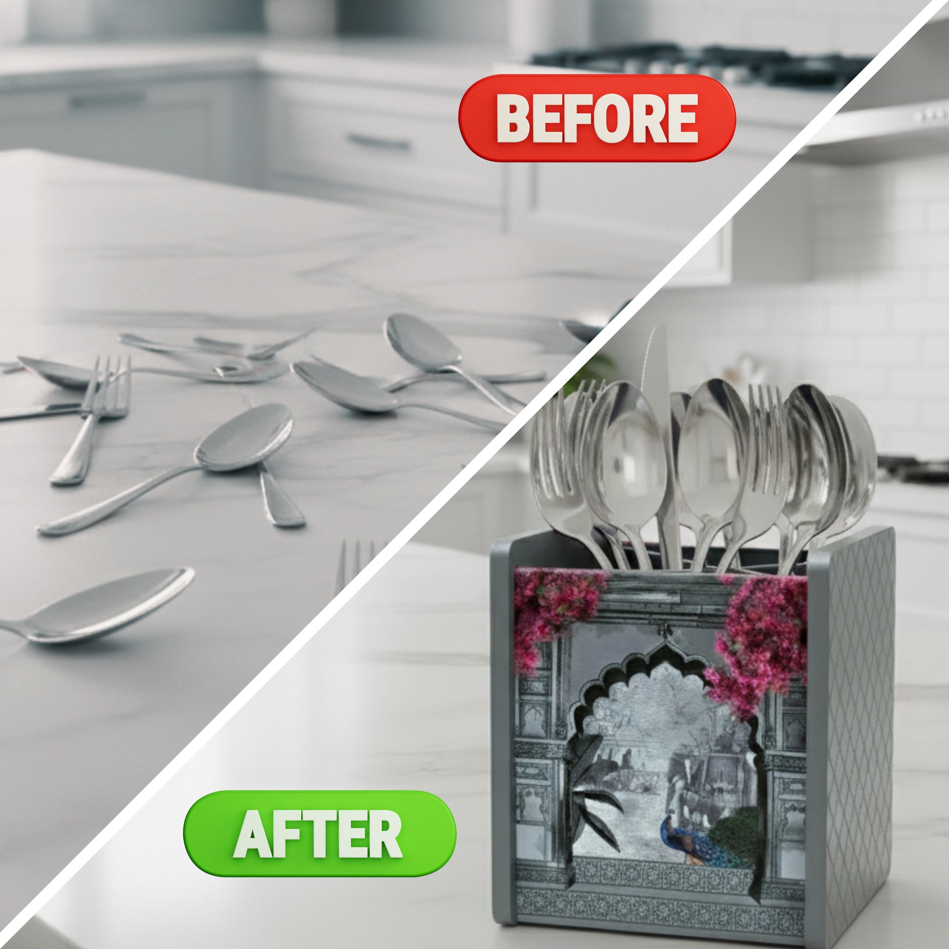This cutlery holder is not just for dining tables — use it to organize stationery, makeup brushes, art supplies, or small kitchen tools. Its compact, multipurpose design makes it a perfect fit for any space in your home or workspace.