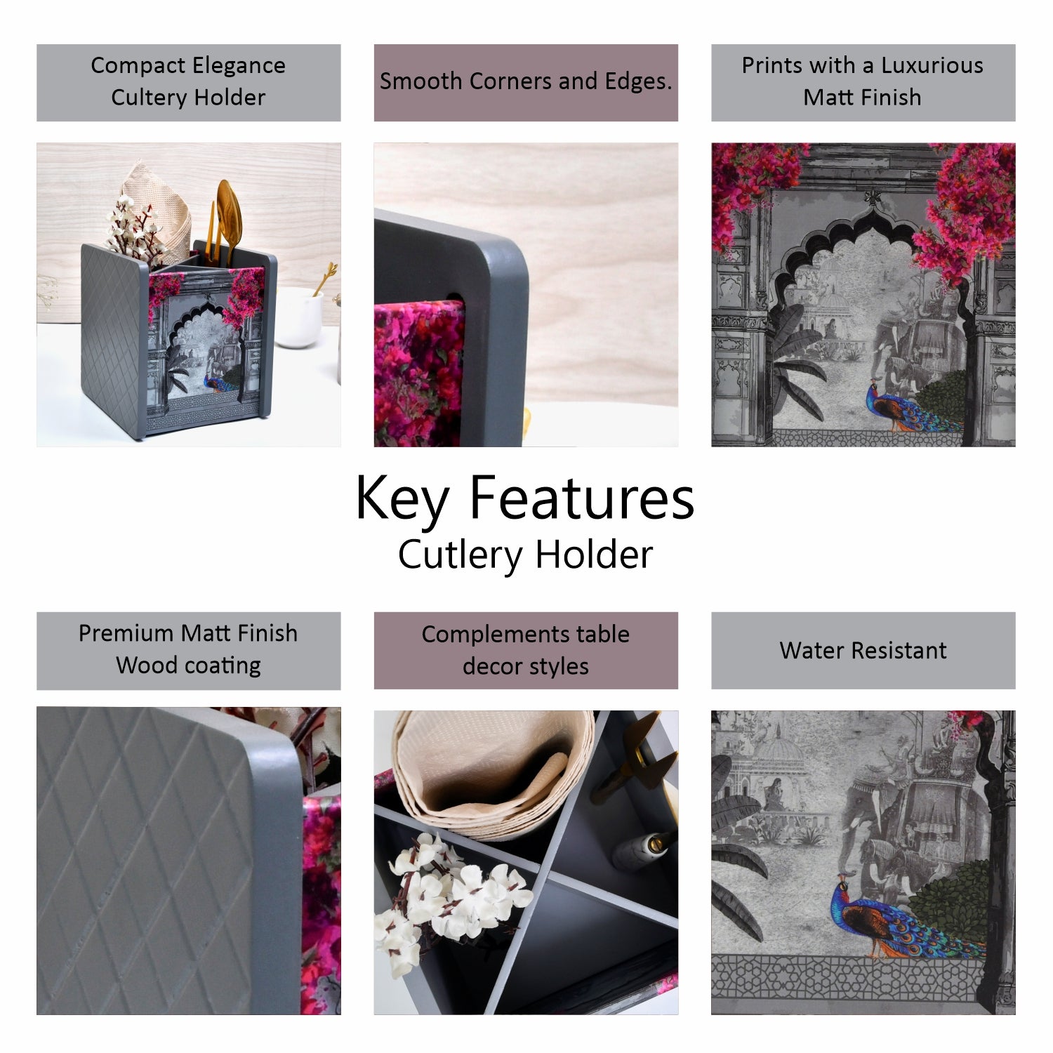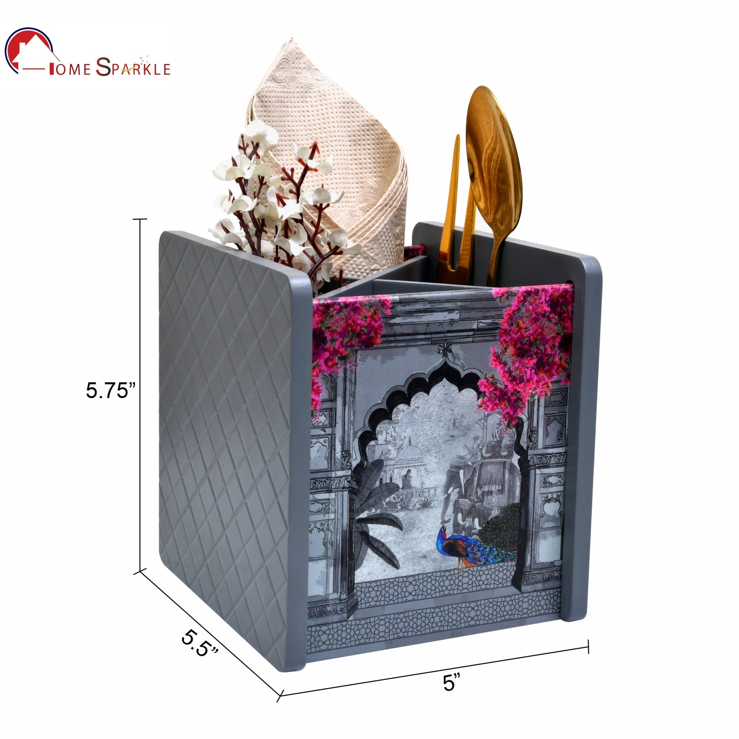 Keep your dining area stylish and organized with this Wooden Cutlery Holder. Designed with multiple compartments, it neatly holds spoons, forks, knives, and napkins while adding an elegant touch to your table. Crafted from premium engineered wood with a smooth finish, it’s both durable and decorative — ideal for everyday use or special occasions.
