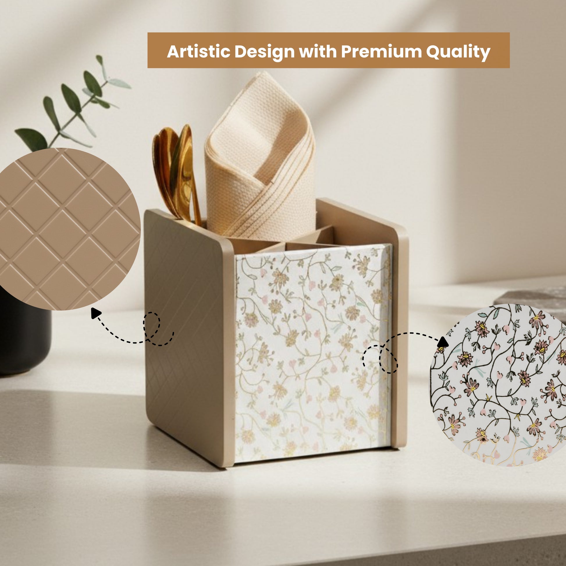 Wooden Cutlery Holder for Dining Table & Kitchen | Multi-Section Utensil Organizer for Spoons, Forks & Napkins – Stylish Table Accessory