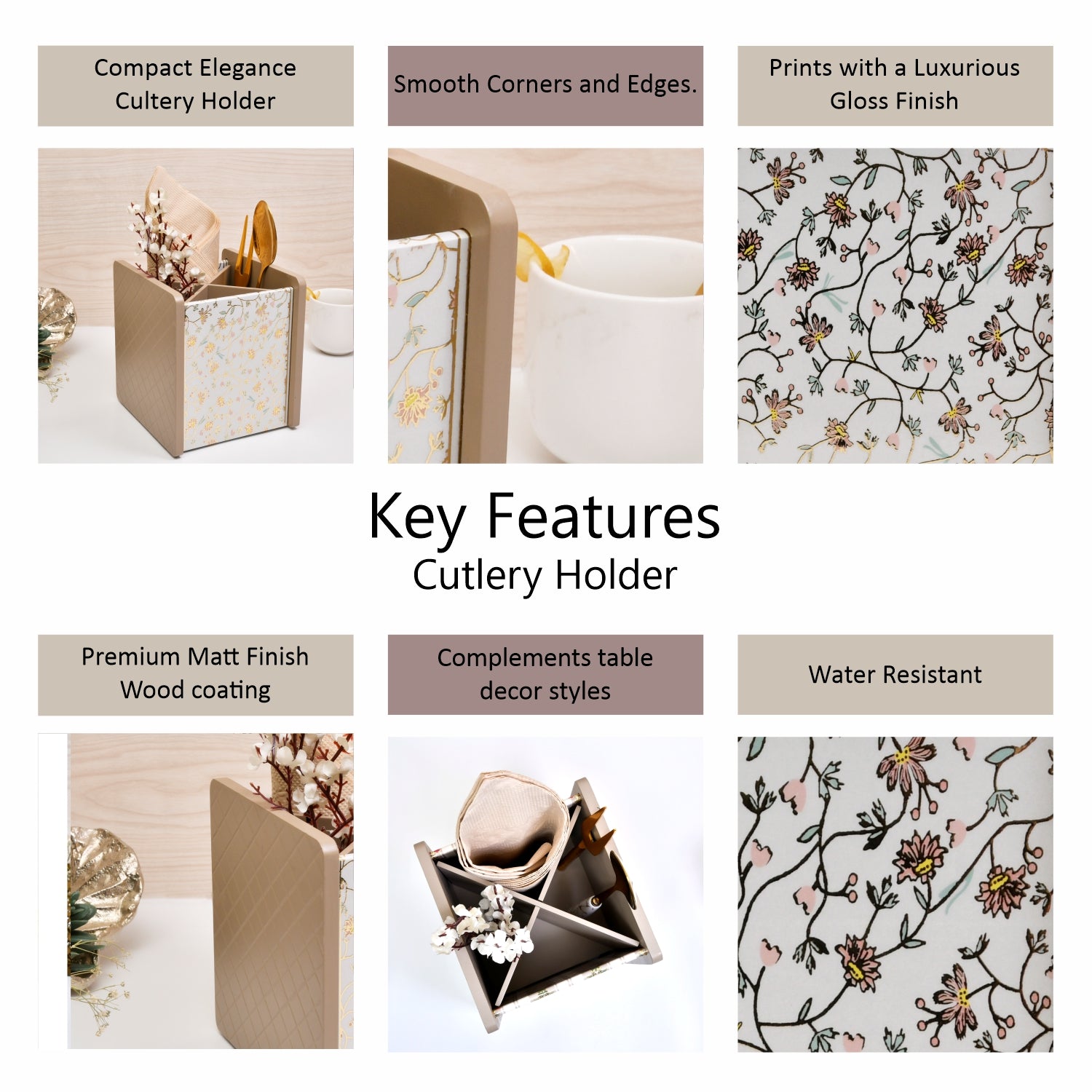 Keep your dining area stylish and organized with this Wooden Cutlery Holder. Designed with multiple compartments, it neatly holds spoons, forks, knives, and napkins while adding an elegant touch to your table. Crafted from premium engineered wood with a smooth finish, it’s both durable and decorative — ideal for everyday use or special occasions.