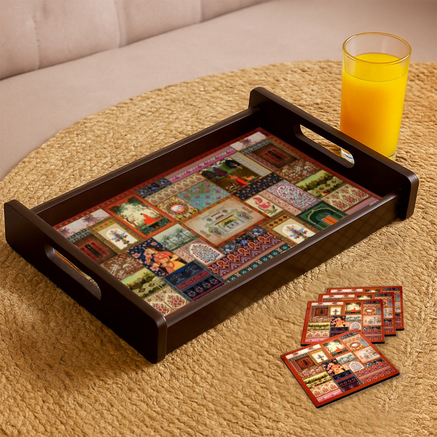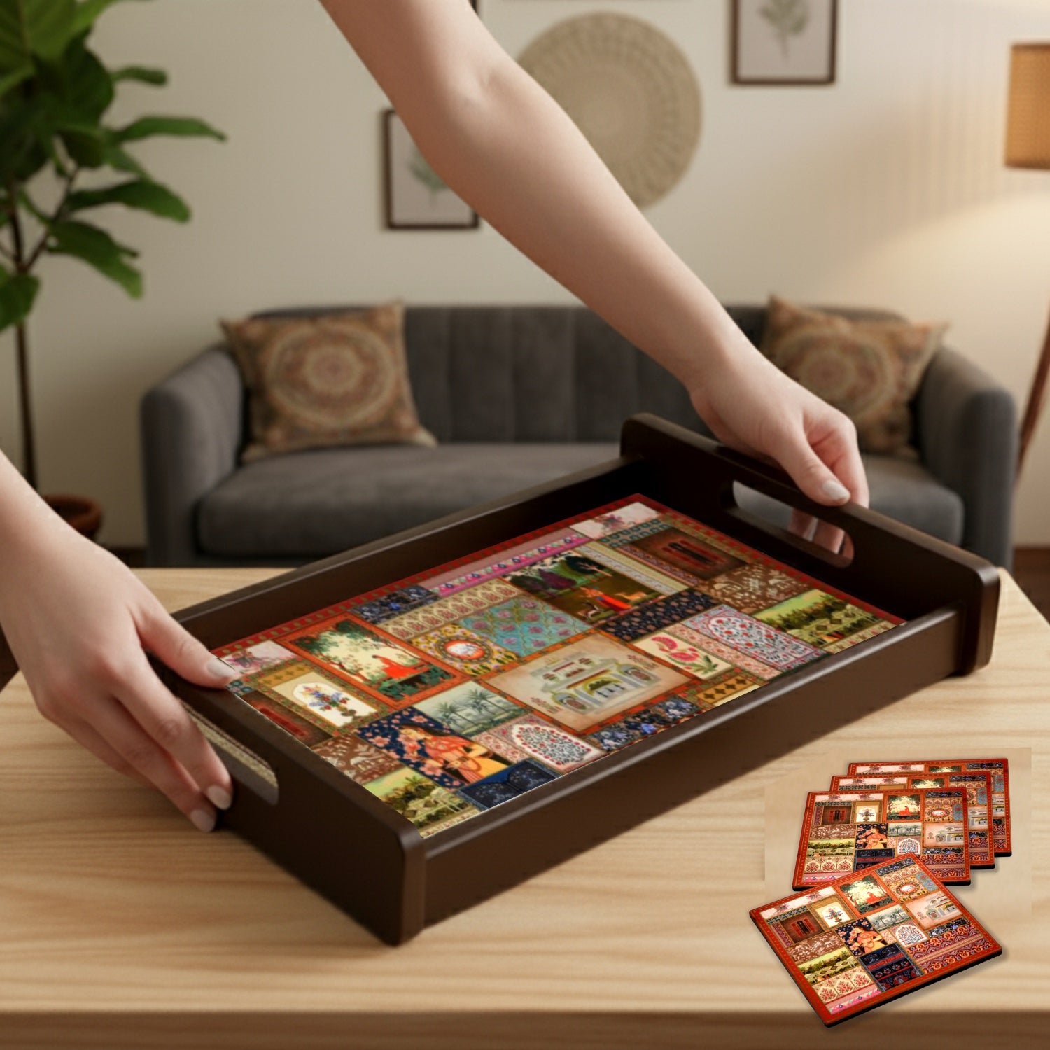 Enhance your serving experience with this beautifully Printed Wooden Serving Tray Set. Crafted from premium engineered wood, it features an elegant printed design that adds charm and sophistication to any space. Perfect for serving tea, coffee, or snacks, this tray comes with matching coasters for a coordinated and stylish presentation.