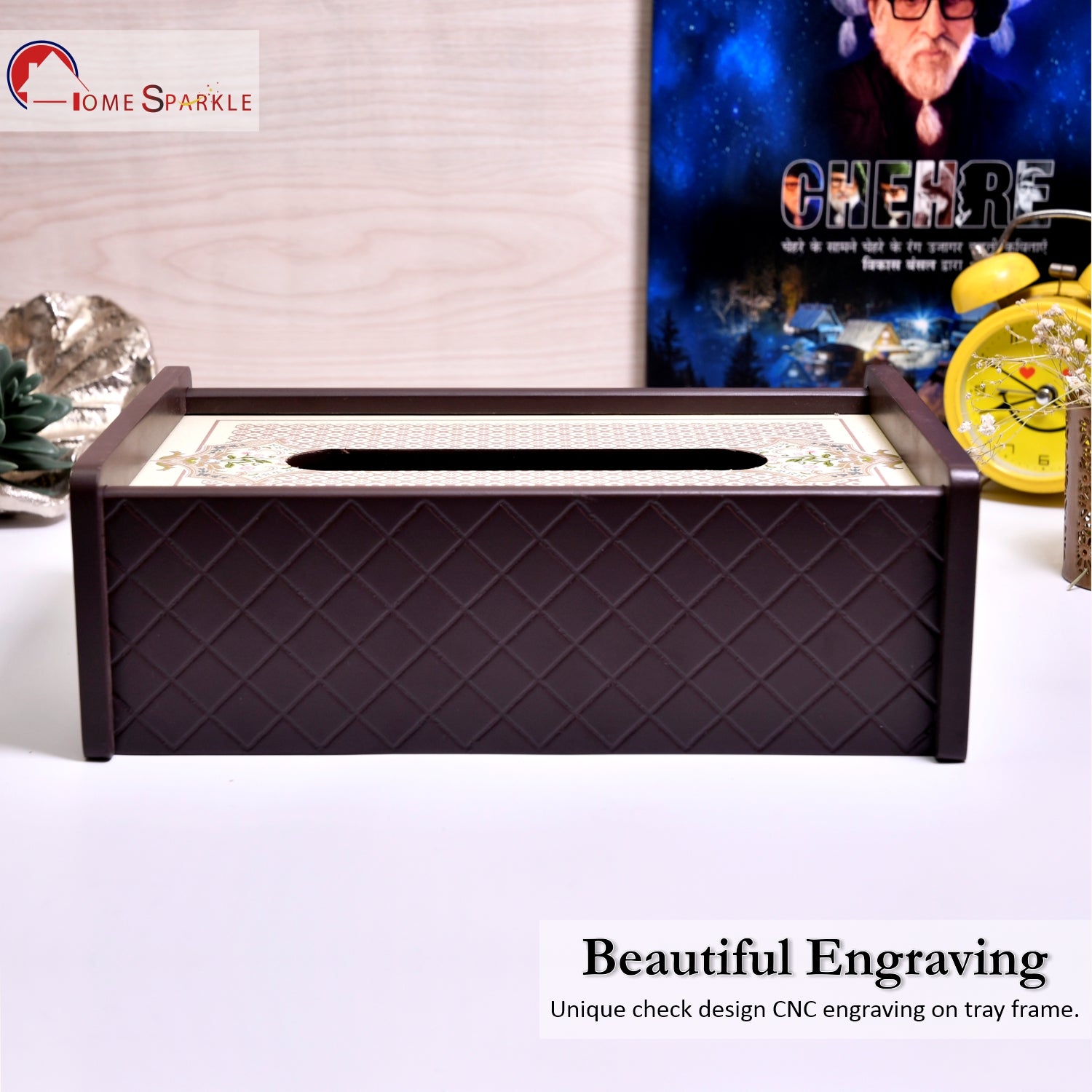 Add a touch of elegance and organization to your dining or living space with this Wooden Tissue Holder. Crafted from high-quality engineered wood, it features a stylish printed design that enhances any décor. The sturdy build and smooth laminated finish make it both functional and visually appealing — perfect for everyday use at home, cafés, or offices.